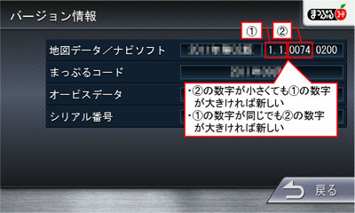 - 「地図データ/ナビソフト」の項目のナビソフトのバージョンを確認してください。