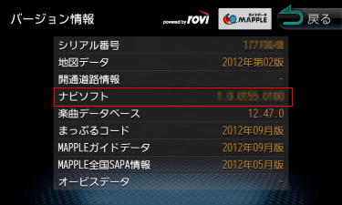 下記の手順に従って、お使いのカーナビゲーションのファームウェアバージョンが、アップデート対象バージョンかどうかを確認してください。