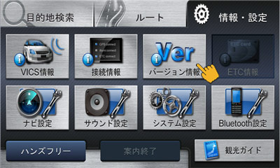 下記の手順に従って、お使いのナビゲーションの地図データおよびナビソフトのバージョンを確認してください。