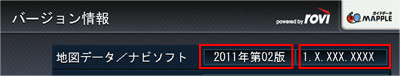 - 「地図データ」および「ナビソフト」のバージョンを確認する。