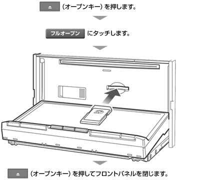 操作パネルを開き、SDカードを軽く押し込んで、カードを取り出します(2の手順を参考にしてください)。