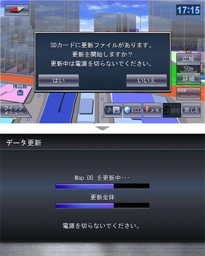 地図データバージョンによって、更新データが異なります。ご注意ください。