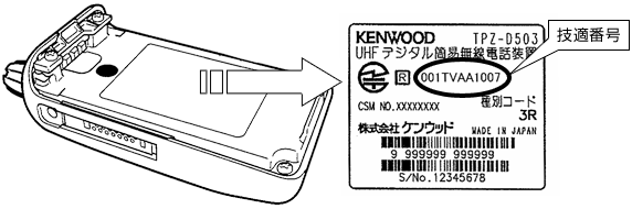 (技適番号の表示位置につきましては、本ページ最下部の図をご参照ください。)