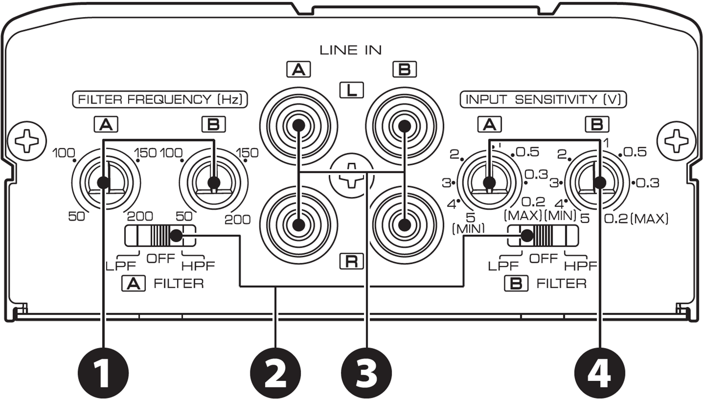 ② Filter Switch to apply HPF / OFF / LPF (A.ch/B.ch).