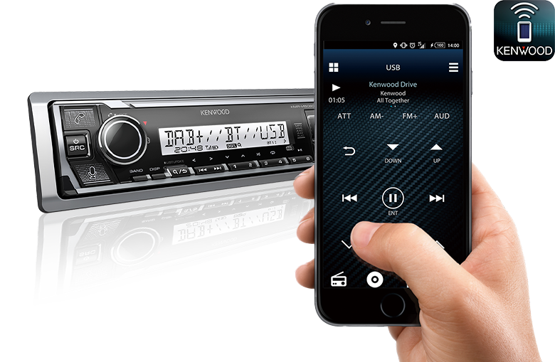 Download the free app “KENWOOD Remote“. You can change audio sources or adjust audio settings like “Time Alignment” or “13-Band EQ” from your smartphone.