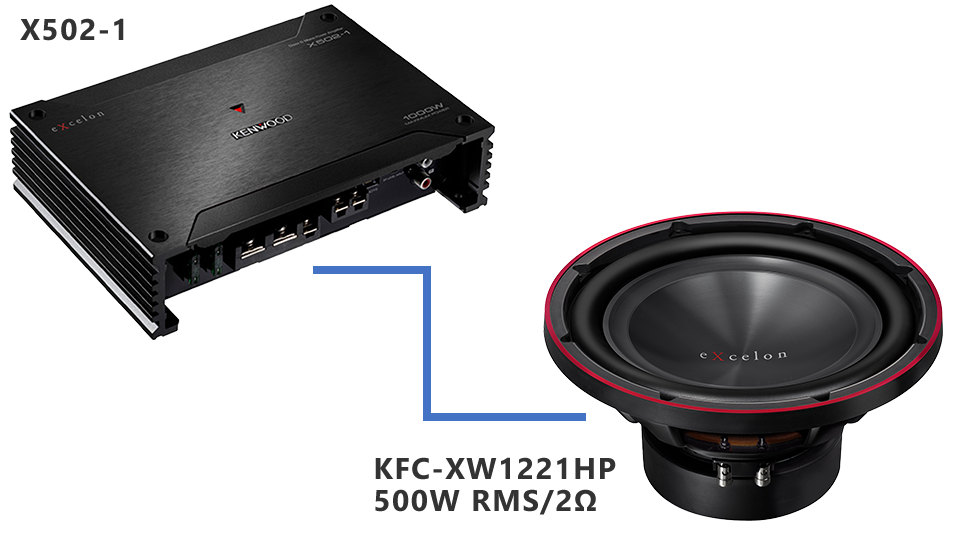 KFC-XR1221HP "High Performance" Class Subwoofer is precisely power matched with the eXcelon X502-1 amplifier.