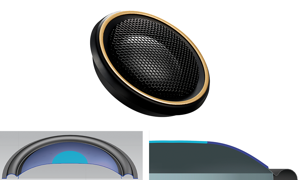 With its compound curvature diaphragm, a large 1-3/16” (30mm) titanium hard dome provides the ultimate in high frequency performance.