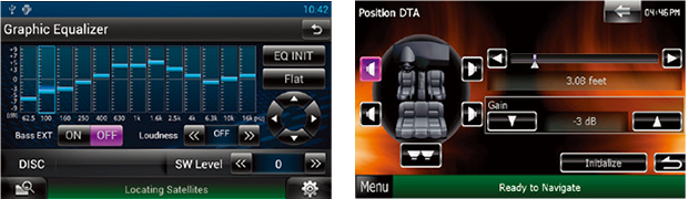 Use the graphic equalizer to tailor the sound quality to your unique tastes. Additional sound contouring is available with the Time Alignment feature, designed to provide optimal and balanced sound performance.