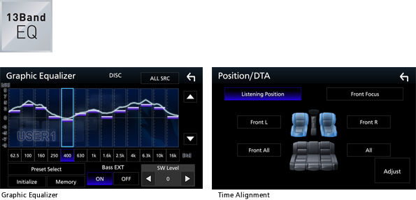 Use the graphic equalizer to tailor the sound quality to your unique tastes. Additional sound staging is available with the Time Alignment feature, designed to provide optimal sound performance.