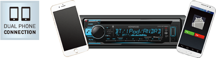 Allows two phones to be connected for hands-free operation at any time. Easily switch between both phones with the touch of a button. Answering, calling or searching your phonebook on your phone is made simple through an intuitive GUI.