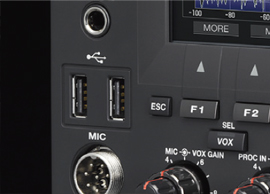 There are a variety of I/O interfaces, including the microphone jack, analog audio input and output, USB audio interface, and optical digital interface. By combining DATA mode (1-3) with SSB/FM/AM modes, it is possible to easily switch between an external device for modulation and demodulation. Switch between DATA VOX function and mute for each modulated line.