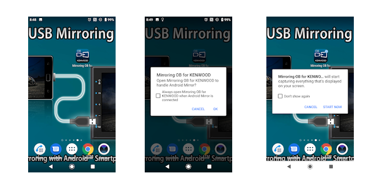 It is a mirroring application that can display the screen of your Android smartphone on the KENWOOD car AV receiver. Operation is possible with the touch panel of the car AV which connected with USB.