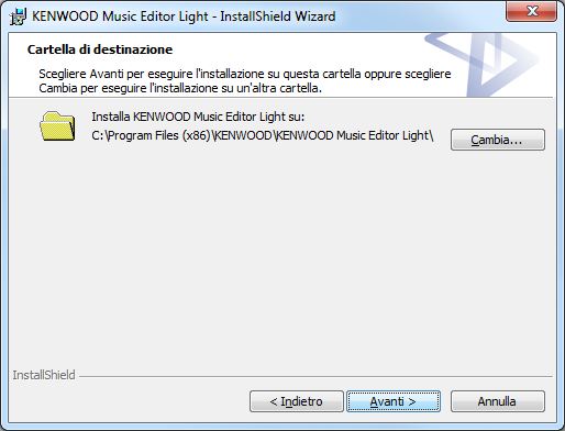 Se si desidera effettuare l'installazione in una cartella diversa, inserire l'indirizzo della cartella, oppure fare clic su [Cambia] per selezionare la cartella desiderata, quindi fare clic su [Avanti].