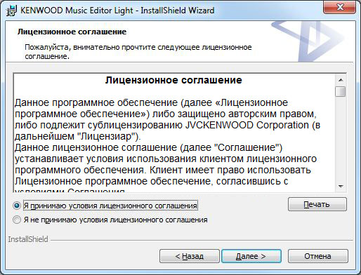 | Версия программы | KENWOOD Music Editor Light версии 1.2.0 |