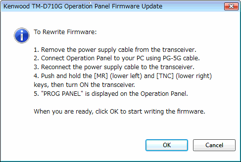 After confirmation of the Operation Panel's current firmware version, the following dialog box will appear. |
