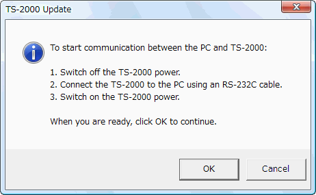 To start communication between the PC and the TS-2000(X)/B2000, click OK. The following dialog box will appear. |