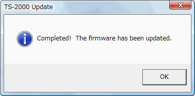 After the firmware writing step is completed, the following confirmation dialog box will appear. |