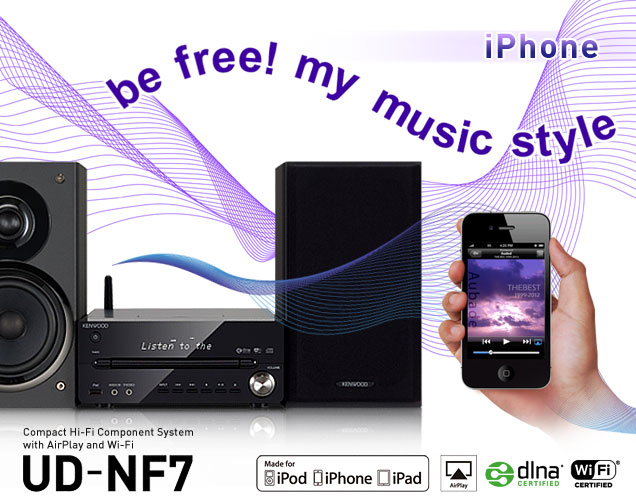 The UD-NF7 supports AirPlay for wireless, high-quality playback of an iPhone or iPad music library.