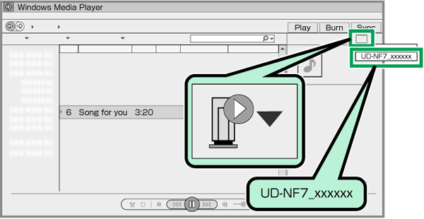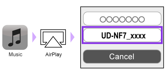 Start the "Music" application and then tap the AirPlay icon. Select "UD-NF7 xxxxxx" as the sound output.