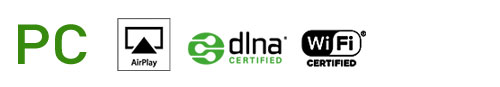 Riproduci i tuoi file musicali senza bisogno di cavi da dispositivi come smartphone Android™ su cui è installata un'applicazione DLNA compatibile. Puoi anche ascoltare musica di alta qualità dal tuo PC o dalle Internet Radio (Spotify, tunein, etc) attraverso i dispositivi compatibili.