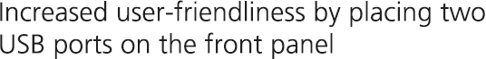 We equipped the front panel with two USB ports, a key jack, microphone jack and a headphone jack. Use USB memory or a keyboard.