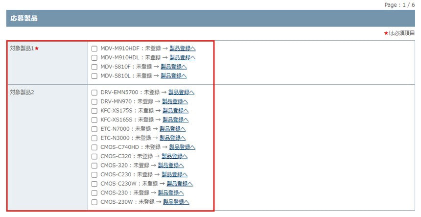 無効です。 - ・ 購入証明書類に記載があっても製品登録と応募製品登録が無い場合は無効または金額加算の対象外とさせていただきます。