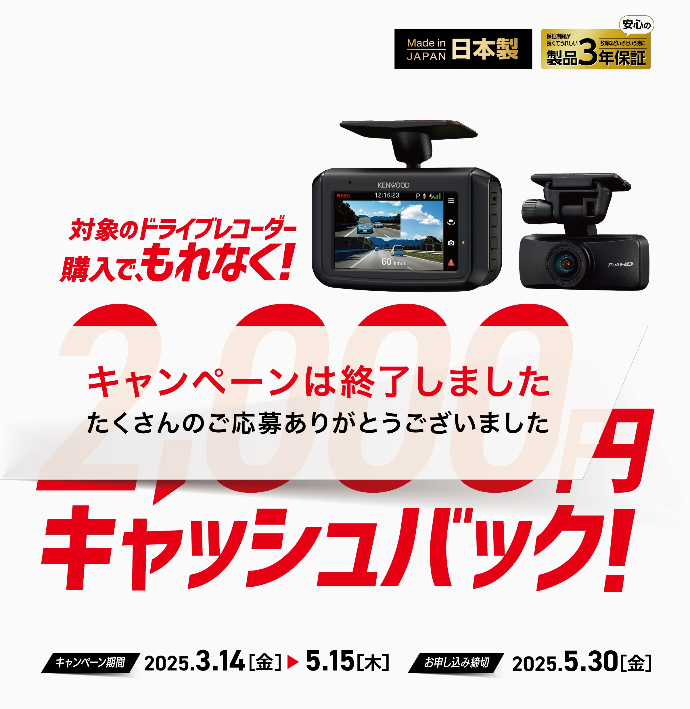 ※上記キャンペーン対象店舗のWEB購入(JVCケンウッドストアは除く)は対象外となります。 オートバックス公式通販サイトで対象商品を購入かつ、オートバックスの店舗で「取り付け」をした場合のみ、有効とさせていただきます。