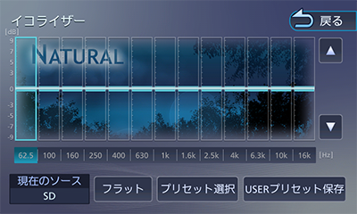 音楽ソースのジャンルに合わせて選択できる6つのプリセットモードと、ユーザー独自に細かく調整できる13バンドグラフィックイコライザーを搭載。各音域を細かく設定できるので、「音のバランスを整えたい」「低音をもっと強くしたい」といった理想の音づくりができます。