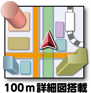 従来の100m地図は線画のみの表現でしたが、本機は100m詳細図表示に対応※。実際の道幅がわかりやすく、また、一方通行、交差点名、施設なども表示されるので使いやすく、しかも圧倒的な美しさを実現しています。さらに、彩速ナビならではの高速スクロールにも対応しています。