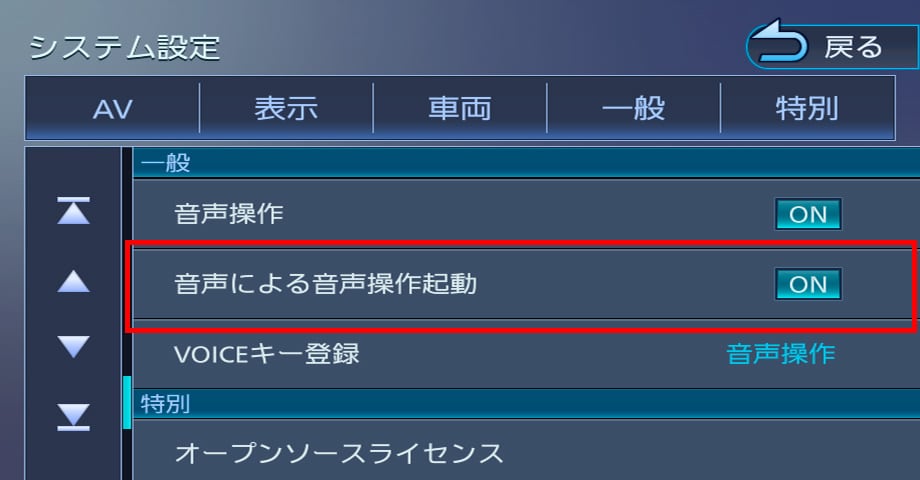※システム設定の「音声による音声操作起動」から設定できます。初期設定はOFFです。