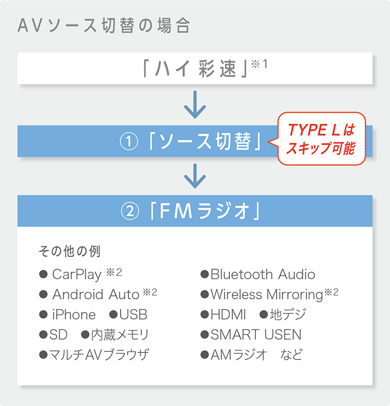※1:TYPE D 2025年モデルの場合、「ハイ彩速」の発話は次の3通りの方法でスキップ可能です。