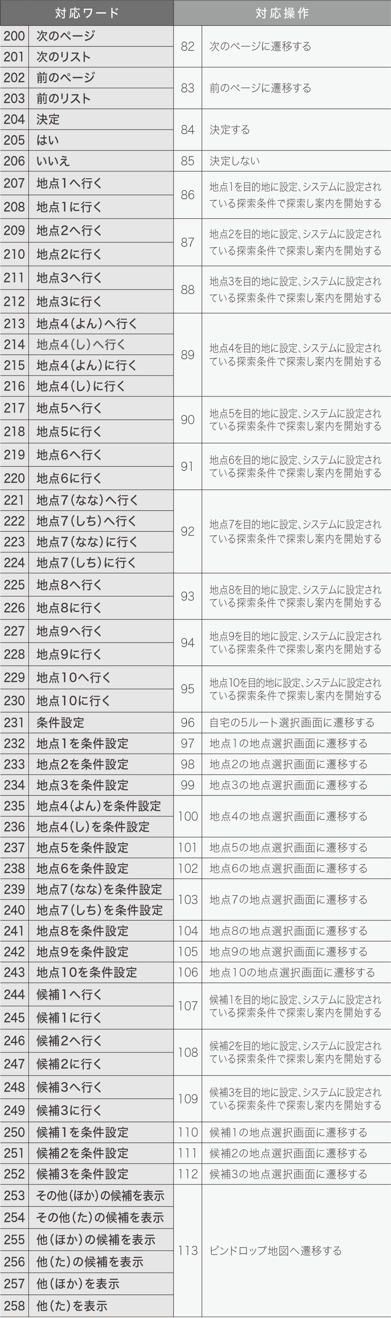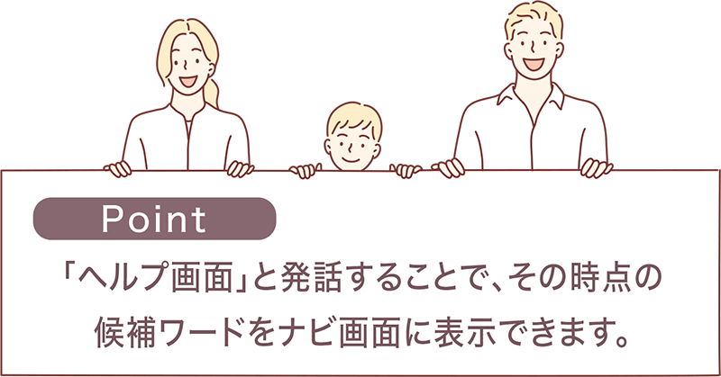 ※2:「ヘルプ画面」と発話することで、その時点の候補ワードをナビ画面に表示できます。