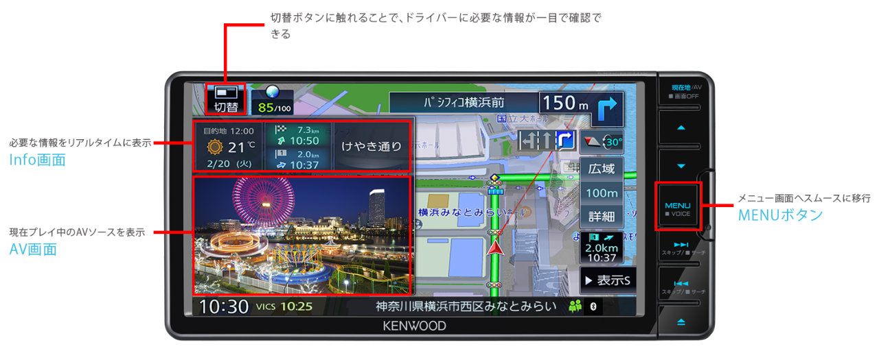 ハイレゾ対応/専用ミラレコ、ドライブレコーダー連携 地上デジタルTVチューナー/Bluetooth®内蔵 DVD/CD/USB/SD AVナビゲーションシステム