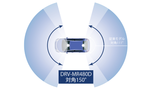 フロントカメラには「水平122° 垂直63° 対角150°」、リアカメラには「水平126° 垂直63° 対角150°」の広視野角レンズを採用し、従来モデルより広い範囲の録画に対応します。
