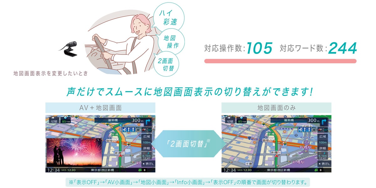 ※2:「ヘルプ画面」と発話することで、その時点の候補ワードをナビ画面に表示できます。