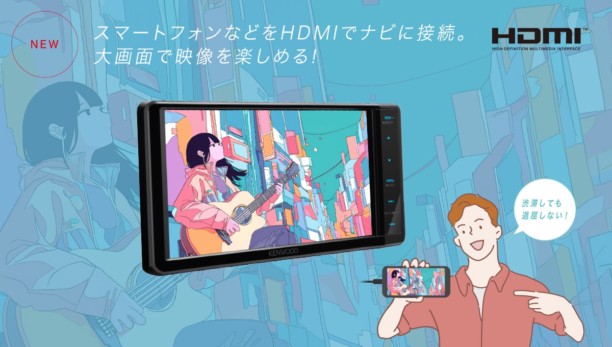 スマートフォン、デジタルカメラやビデオカメラなどとHDMIケーブル(別売:KNA-20HC)を介して接続することで、高画質な映像を手軽に楽しむことができます。