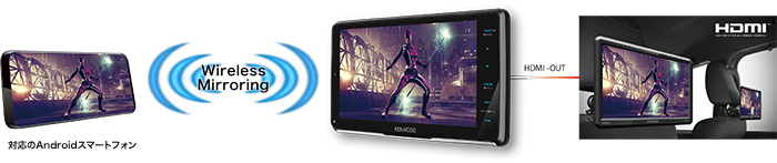 MDV-M910HDF/M910HDLとAndroidスマートフォンを「Wireless Mirroring」機能を使用して接続。