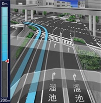 都市部や幹線道路などの複雑な交差点をリアルなイラストで表示。道路上のラインや表示を写真のように再現して、適切なレーンへわかりやすく誘導します。