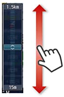縮尺表示にタッチすると画面上にスライダーバーが現れ、バーをドラッグすると縮尺を自在に変えることができます。