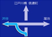 方面看板にルート案内が色違いで表示されるので、瞬時に目的の方向を判断することができます。