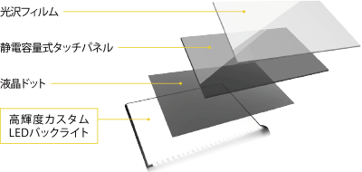 さらに、高精細HDパネルに加え、グレア処理した静電容量式タッチパネルと組み合わせることで彩速史上最高画質を実現しました。
