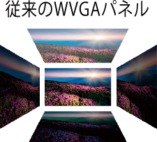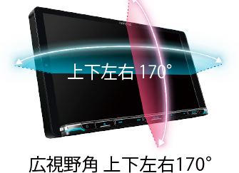 広視野角HDパネルは、当社従来品のWVGAパネル比で約1.3倍広い上下左右170°のワイドな視野角。さらに、色やコントラスト(明るさと暗さの輝度差)の変化が少ないため色反転が起きません。これにより運転席と助手席のどちらからでもくっきり鮮明な美しい映像を楽しむことができます。