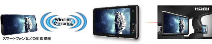 ※ワイヤレスミラーリングは映像再生側のAndroidスマートフォンが対応していることが必要です。また接続する機器によっては再生できないことがあります。