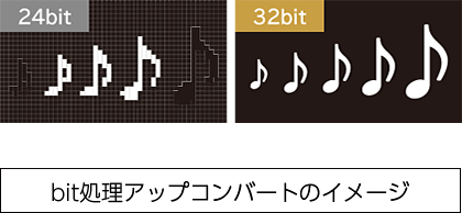 ハイレゾ音源はもちろんのこと、CDやiPhone/iPod、地デジ、DVD、ラジオなどのアナログ音源も192kHz/32bitのデジタルデータにアップコンバートしてから音楽信号に変換。全てのソースをハイレゾ音質で楽しめます。