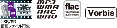 DVDビデオ、CD、大容量SDXCカード、USBメモリなど、さまざまなメディアの再生が可能。身近なMP3から高音質なハイレゾ、動画ファイルなどに幅広く対応しています。