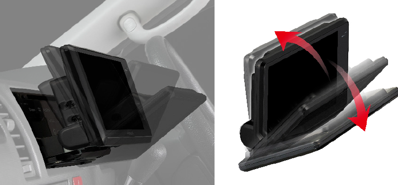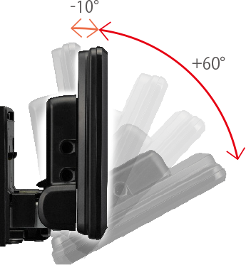 モニターパネルのアングルを手動で変更することで、ドライバーから 見やすい角度に調整できます。取付時にモニターパネルを奥行き2段階、 高さ4段階に取付位置を設定できます。