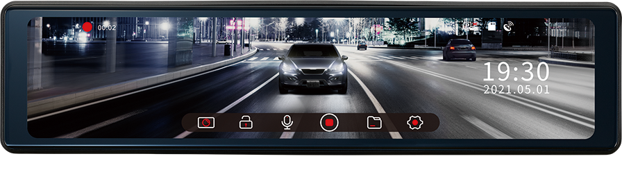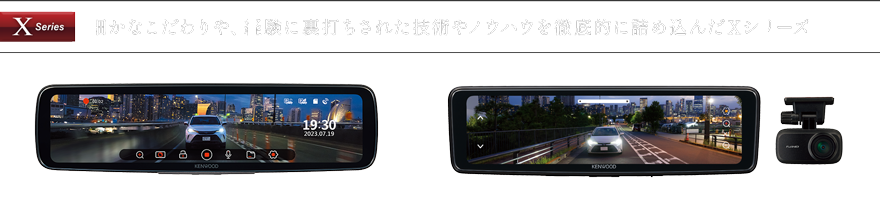 従来のルームミラーと比べて車体や荷物などで生じる後方の死角を減らし後方視界が格段に拡がる大画面12V型高画質液晶搭載。業界TOPクラスのデバイスと機能を組み込み、自然でクリアな映像表示と記録を実現した「ハイクリアチューン“X series”」