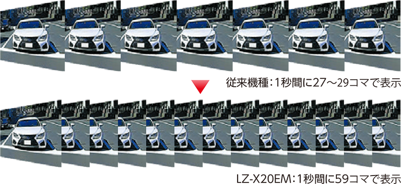 通常モデルの約2倍のコマ数の高いフレームレートで再生するので、滑らかで自然な高精細な映像表示を実現します。