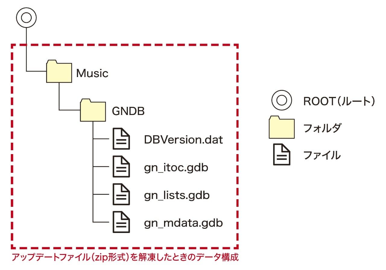 ローカルUPDATEは、CDタイトル約12万枚分の情報を含めたアップデート用ファイルを利用して、カーナビゲーションシステムに内蔵されたCDタイトルデータベースをアップデートする仕組みです。
