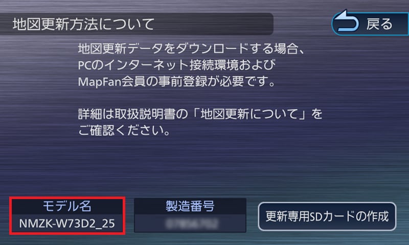 下記の手順で、ナビ画面に表示される対象モデル名をご確認のうえ、サポート情報案内ページをご参照ください。